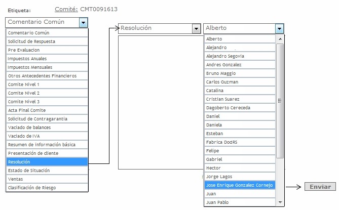 Las etiquetas complejas de tipo aprobación abren un caso, el cual debe ser cerrado dentro del sistema. Toda etiqueta compleja, avisa mediante un correo electrónico a los usuarios previamente seleccionados, exclusivamente para la Ficha F. Entonces tenemos etiquetas complejas como: