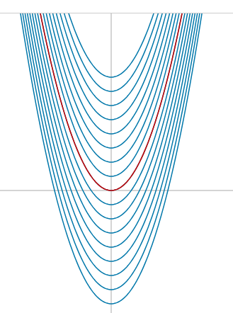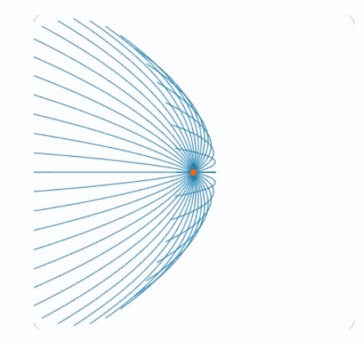 De este modo, el plano queda foliado3 por parábolas que no se intersectan, generando una estructura suave. Esto ilustra cómo una curva suave puede definirse naturalmente como solución de una ecuación diferencial ordinaria. Ahora se construye una superficie suave en \(\mathbb{R}^3\) a partir de un sistema de ecuaciones diferenciales ordinarias parametrizadas. Estas ecuaciones definen una familia de curvas integrales que, al variar un parámetro adicional, generan una superficie completa. Sean \(s\) el parámetro de la curva y \(t\) el parámetro que indexa la familia de curvas. Se considera el sistema: $$ \begin{cases} \frac{dx}{ds} = \cos t \\ \frac{dy}{ds} = \sin t \\ \frac{dz}{ds} = s \end{cases} $$ con condiciones iniciales: $$ x(0,t)=0,\quad y(0,t)=0,\quad z(0,t)=0 $$ Integrando respecto de \(s\), se obtiene4: $$ \begin{aligned} x(s,t) &= s\cos t, \\ y(s,t) &= s\sin t, \\ z(s,t) &= \tfrac{1}{2}s^2. \end{aligned} $$ Esto define la parametrización: $$ \Phi(s,t) = \big(s\cos t,\, s\sin t,\, \tfrac12 s^2\big). $$ Superficie suave construida a partir de EDOs parametrizadas5