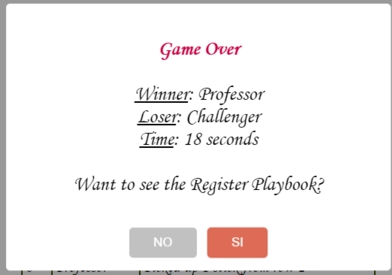 The game is fast lapsing, especially when the Professor plays, so that the challenger must react within a few seconds.