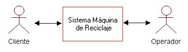Ejemplo: Como ejemplo esta el caso de una Máquina Recicladora: Sistema que controla una máquina de reciclamiento de botellas, tarros y jabas. El sistema debe controlar y/o aceptar: